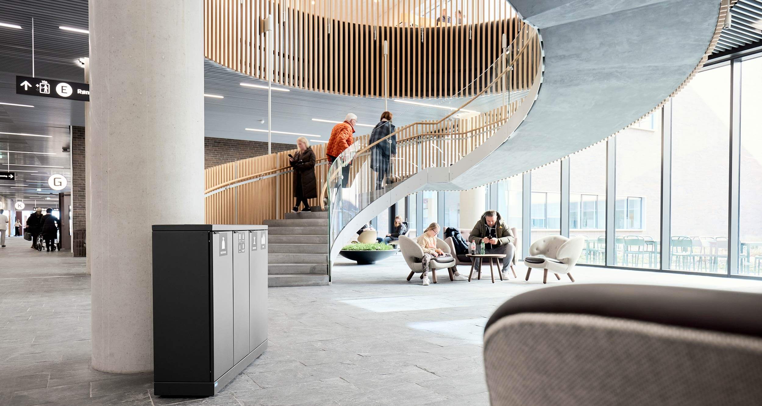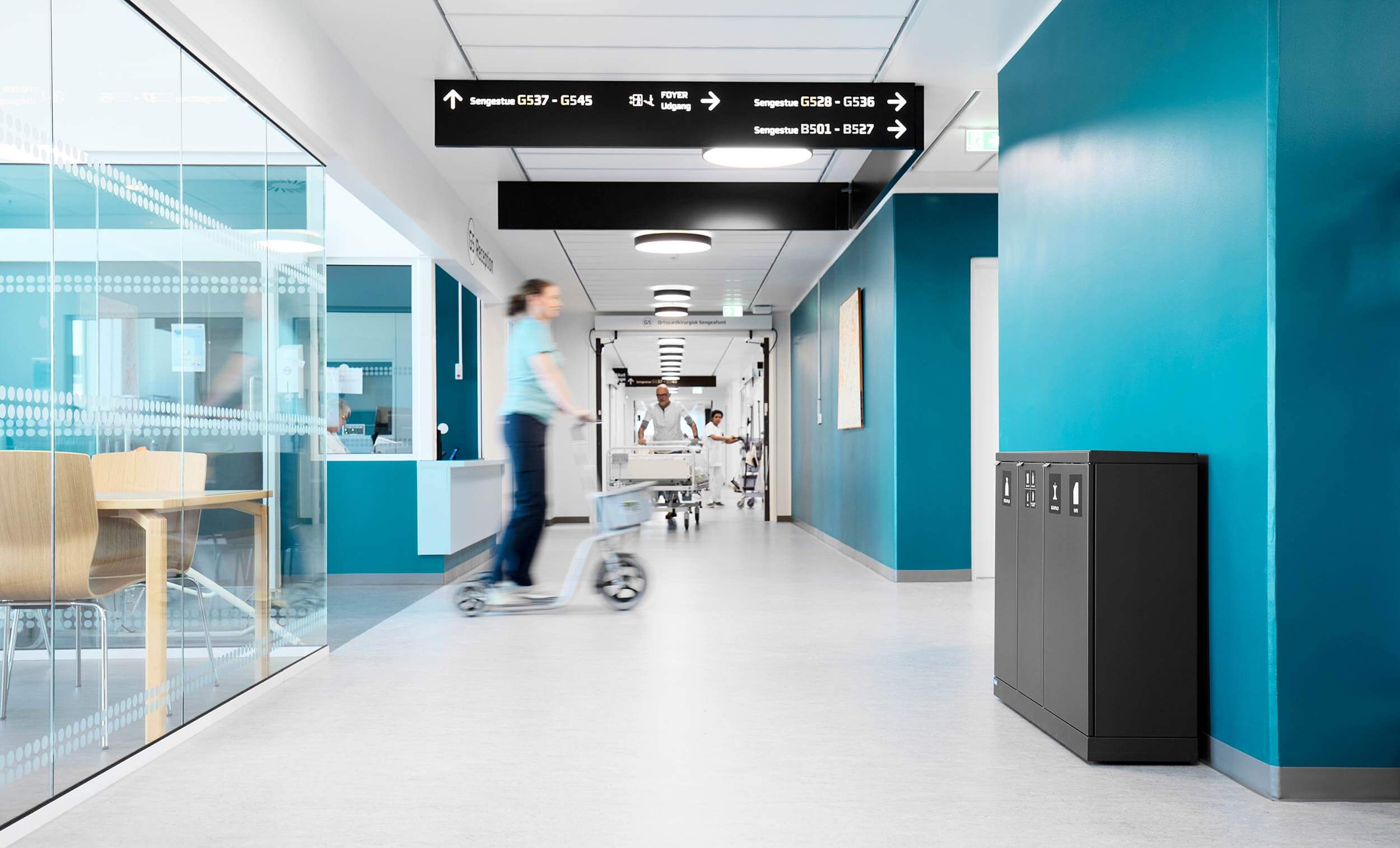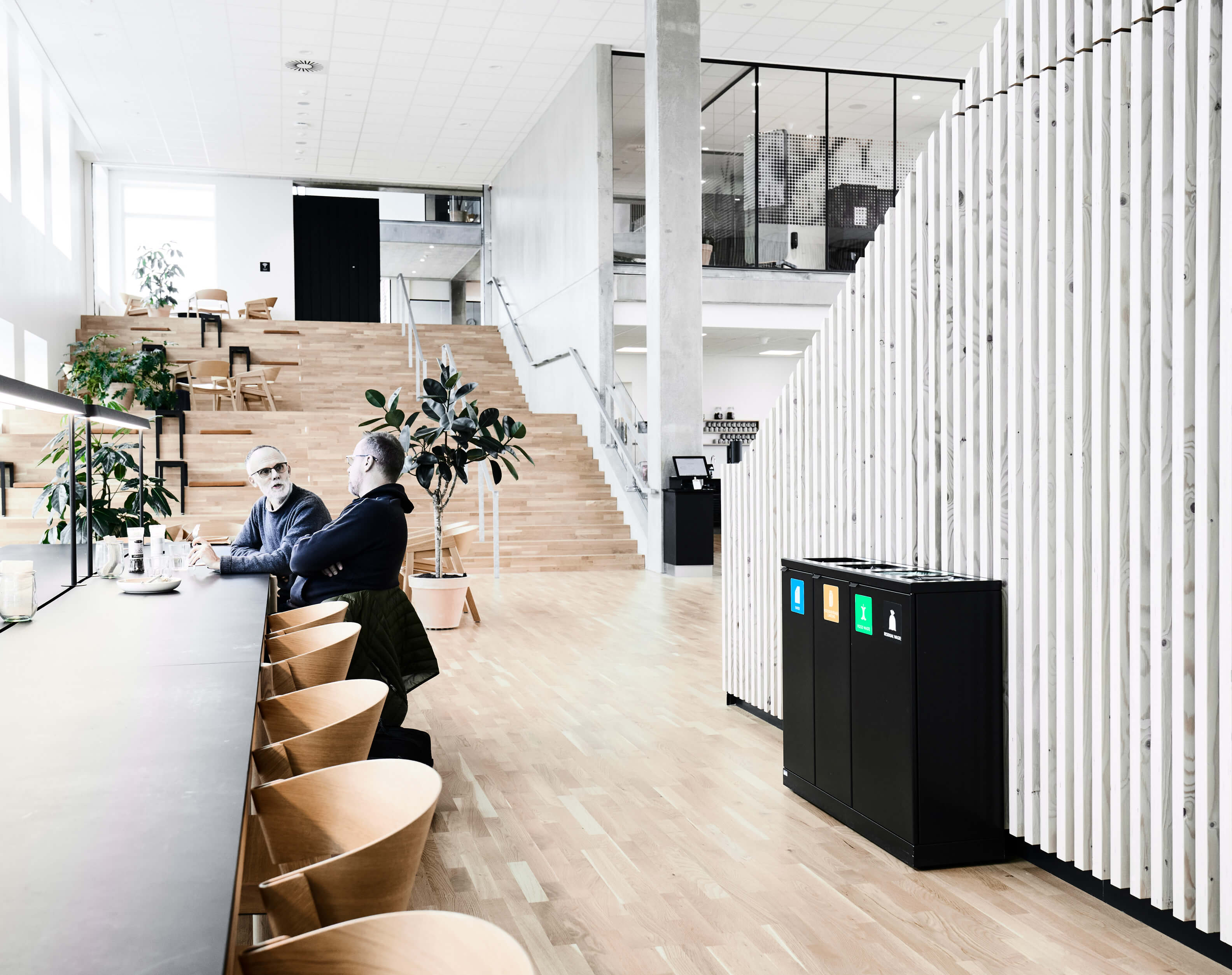 Fleksibelt affaldssystem fra Bica sikrer nem og brugervenlig affaldssortering på arbejdspladsen. Affaldssystemet tillader differentieret volumen i en samlet løsning, som er praktisk, hvis man har brug for sortering i forskellige mængder. Der er monteret hylder i fraktionen 2x45 liter, hvilket giver mulighed for at indsætte inderbeholdere i plast til skarpt affald, hvor posen kan gå i stykker.