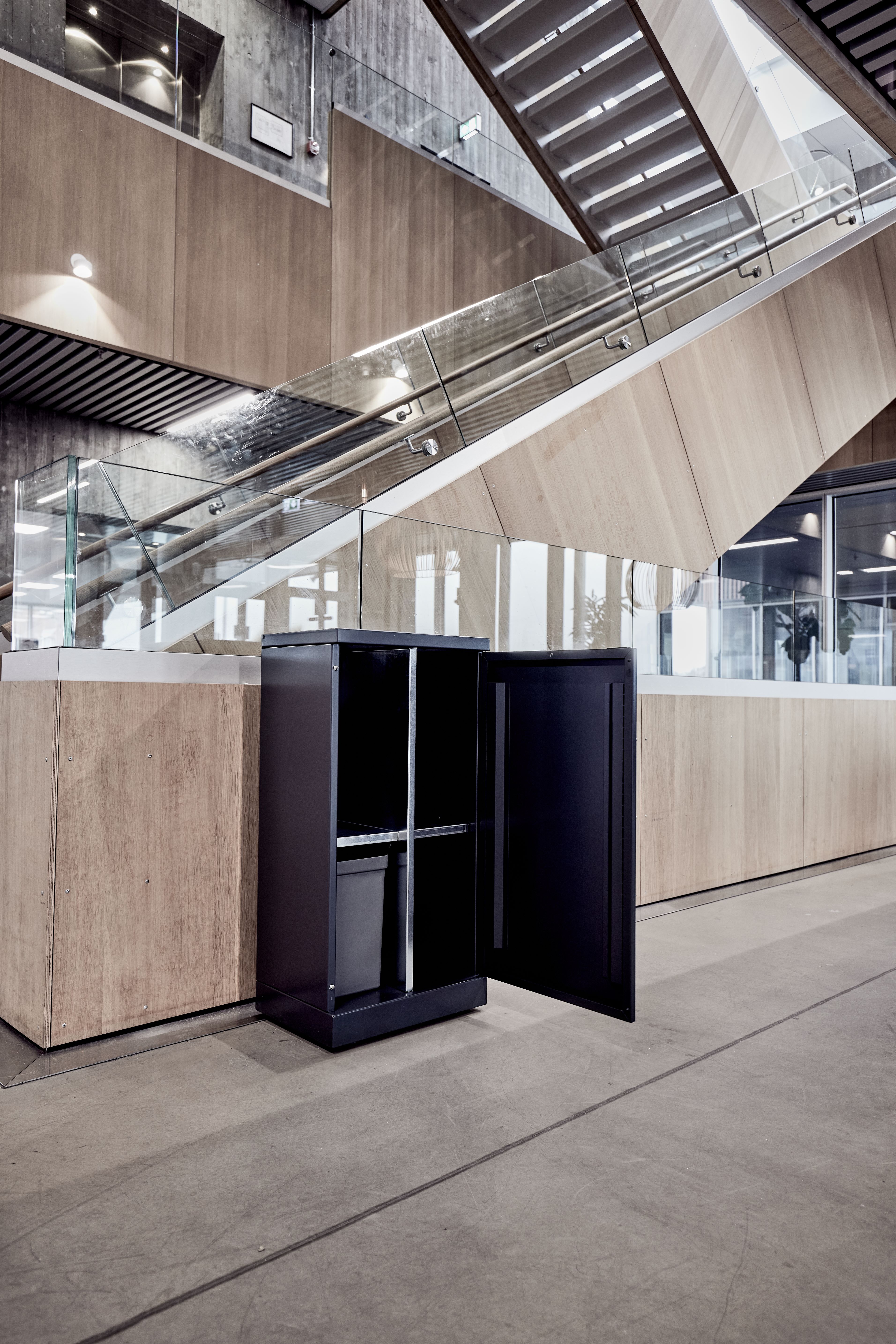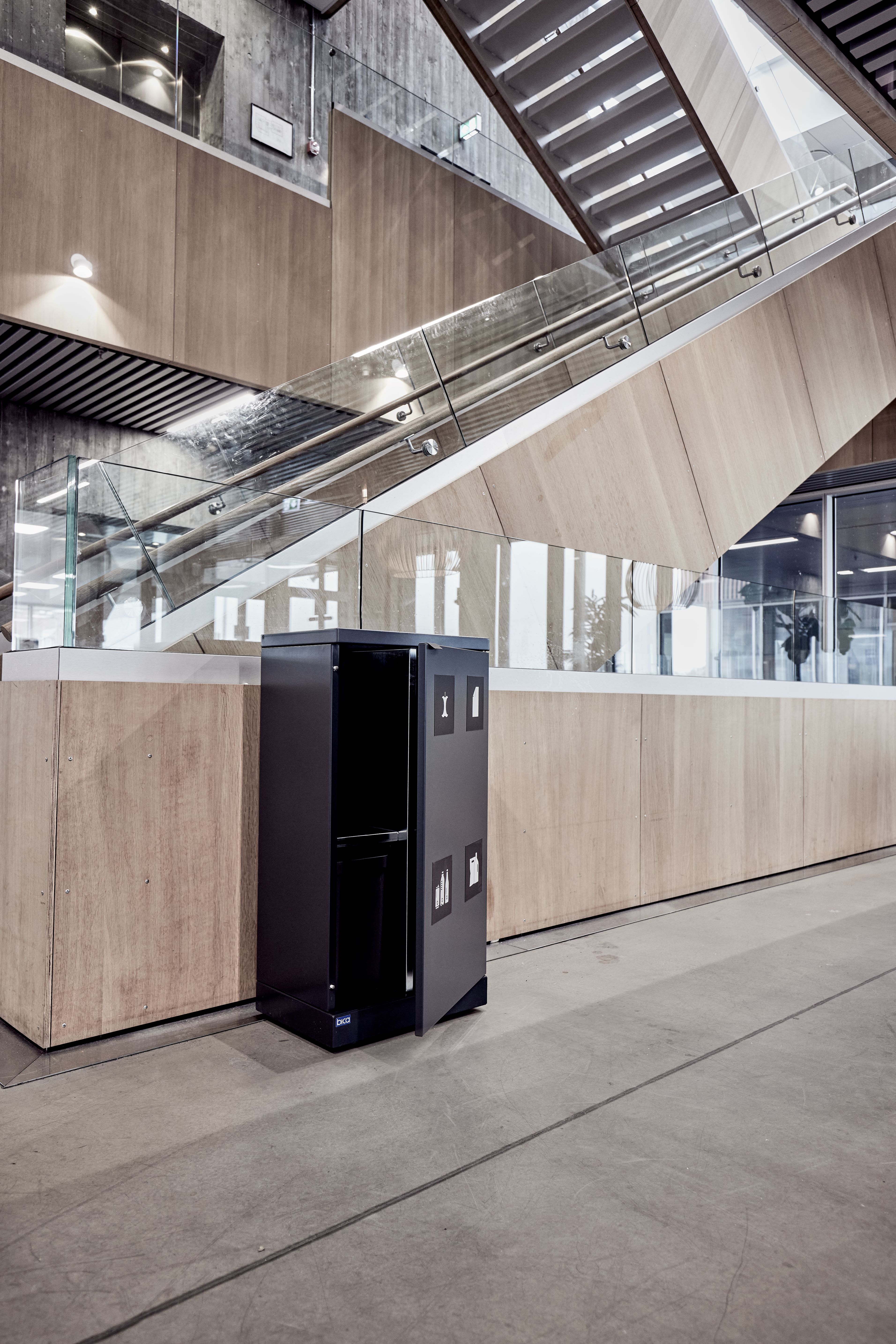 Fleksibelt affaldssystem fra Bica sikrer nem og brugervenlig affaldssortering på arbejdspladsen. Affaldssystemet tillader differentieret volumen i en samlet løsning, som er praktisk, hvis man har brug for sortering i forskellige mængder. Takket være de aftagelige hylder kan rummet reduceres, så der opnås 4 sorteringsmuligheder. Der vil være mulighed for at indsætte inderbeholdere i plast til skarpt affald, hvor posen kan gå i stykker.