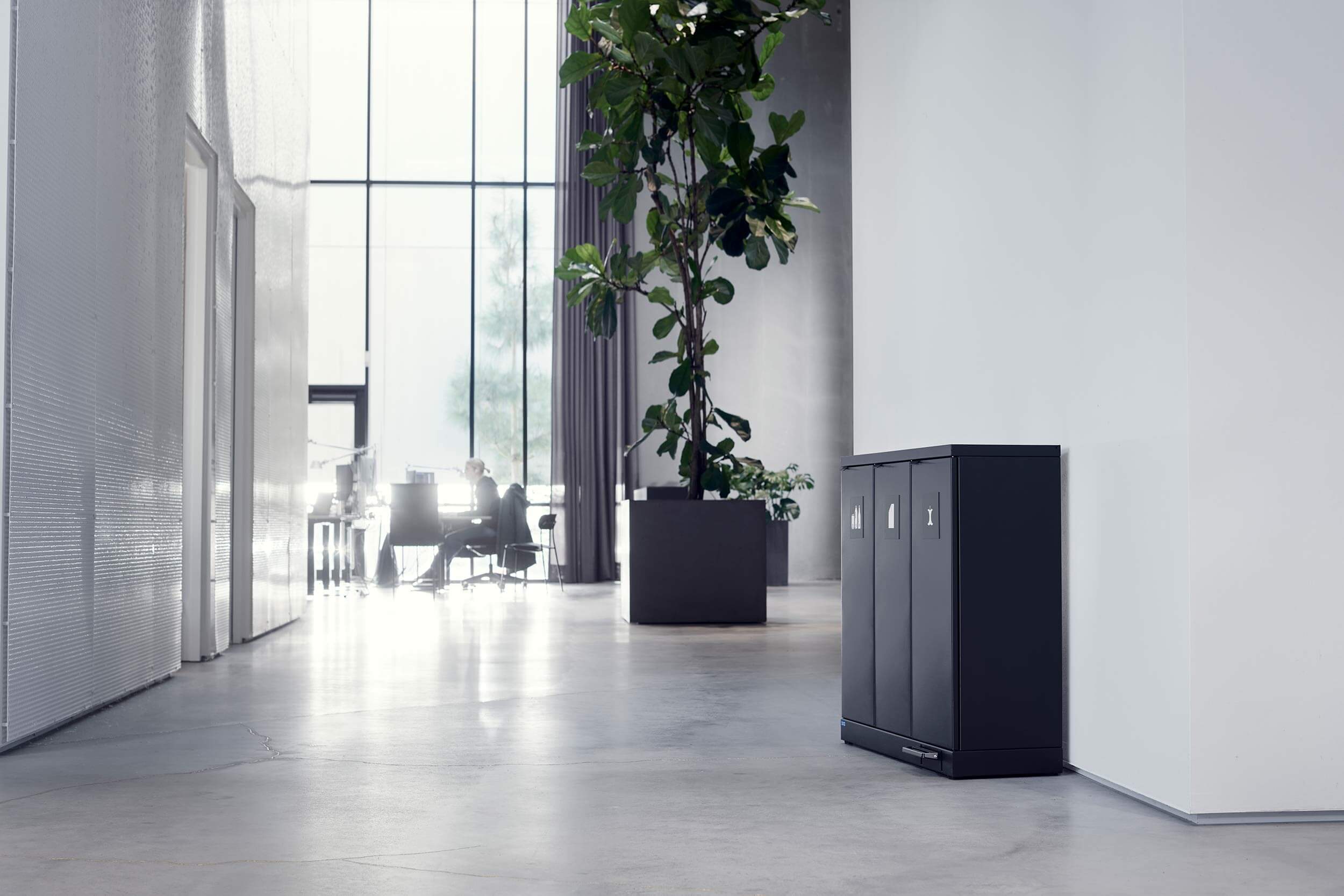 Fleksibelt affaldssortering med pedal fra Bica sikrer nem og brugervenlig affaldssortering på arbejdspladsen. Affaldssystemet er designet med 2 åbne indkast og 1 fraktion med et praktisk låg, som åbnes ved hjælp af den praktiske fodpedal, så håndfri betjening sikres. Formålet med låget er at minimere lugtgener og forhindre bananfluer ved sortering af madaffald. En rigtig smart løsning, hvis posen ikke tømmes så ofte.