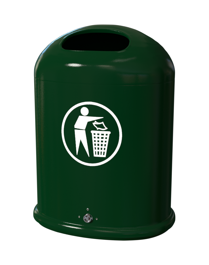 Solid affaldsbeholder til opsætning på diverse udendørsarealer. Affaldsbeholderen kan monteres på væg eller stolpe. Affaldsbeholderen har en kraftig og solid konstruktion og tømmes nemt fra bunden med trekantnøgle. Der kan med fordel påsættes et affaldspiktogram på fronten af beholderen.